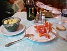 アンティパスティにサラミと生ハムの盛り合わせ(と出て来て解った)、