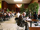 テーブル席が沢山並んでいる広いフロアの壁側に陣取る。