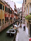 飲食店の裏側の細い水路では、八百屋らしきゴンドラから、