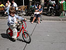 噴水の周りを自転車で走り回っている男の子が可愛い。